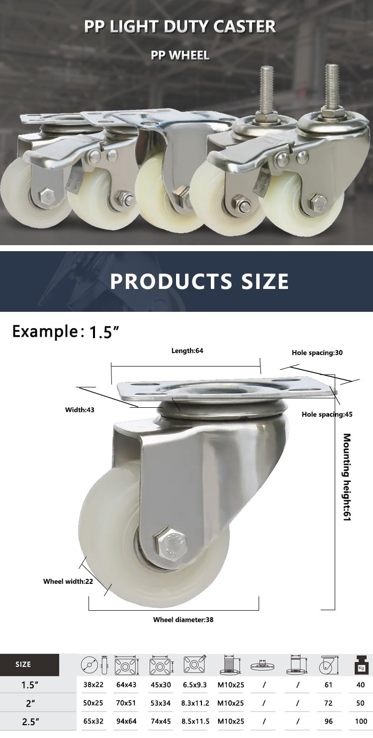Upgrade the mobility and functionality of your industrial equipment with the Medium-Heavy Duty Plate Swivel Casters. Designed with durable polypropylene (PP) wheels, these casters are perfect for handling medium-heavy loads in plant workshops, on large machines, and in warehouse logistics environments.