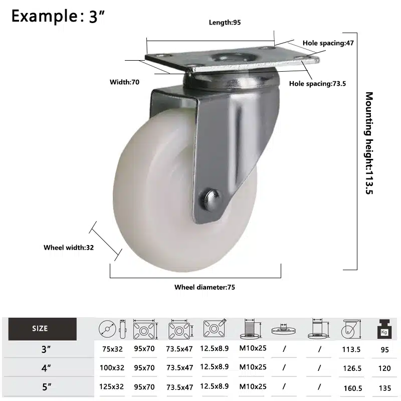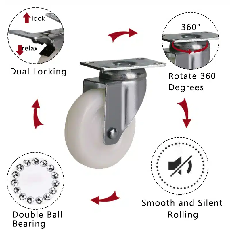 - Durability: Constructed from high-quality nylon, stainless steel, and steel, these casters ensure long-lasting performance even under heavy loads.